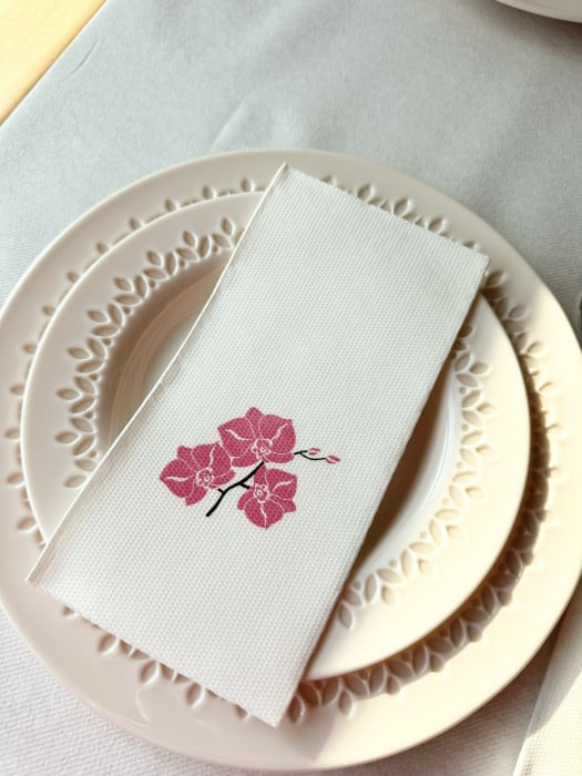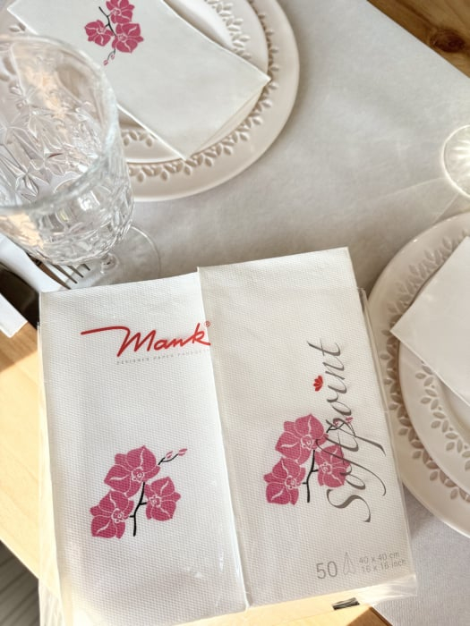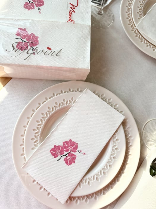 BAX Ünnepi Softpoint szalvéta – Shija (orchidea rózsaszín minta) / 40 × 40 cm / hajtogatás 1/8, 600 db