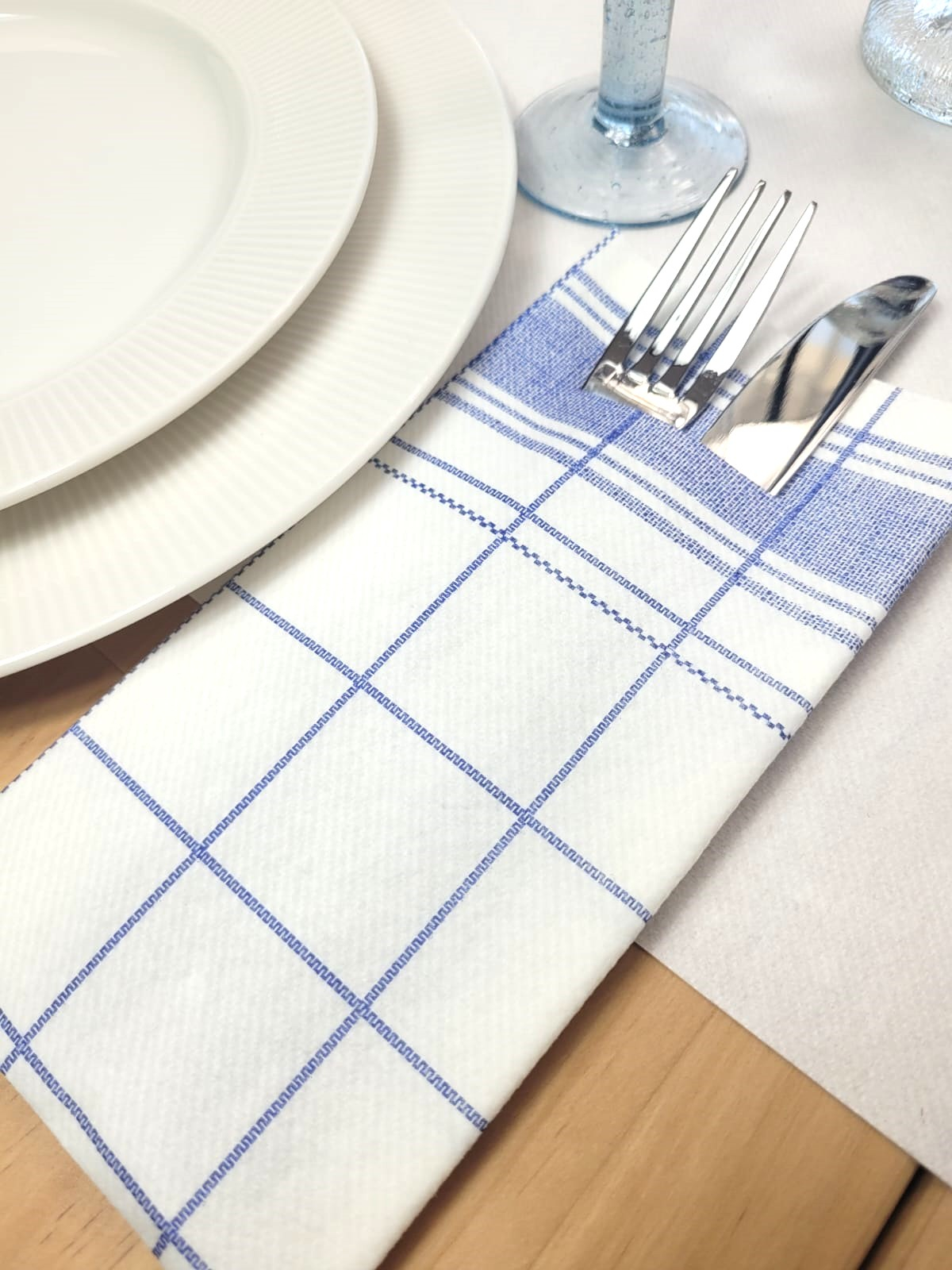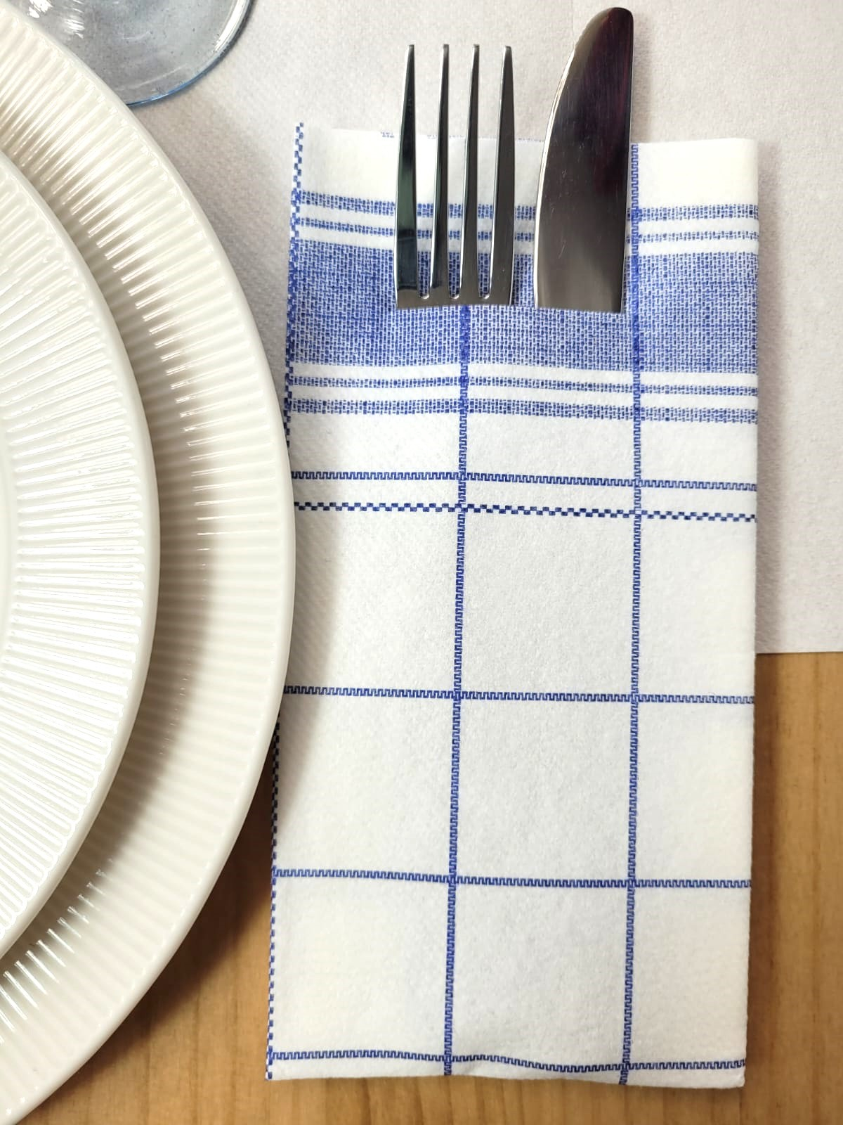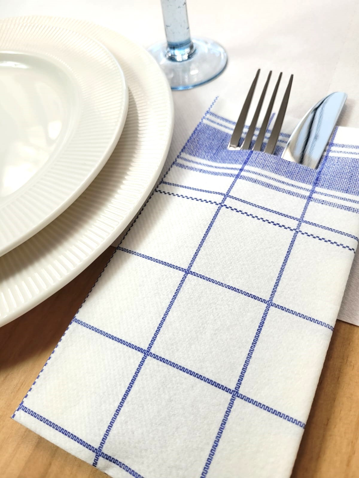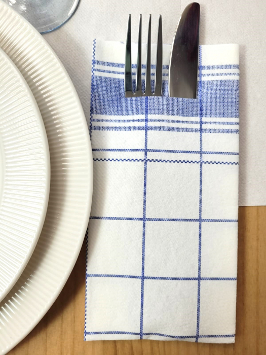Zsebes evőeszköztartó szalvéta, Linclass – Nadeem (fehér kockás) / 40 × 40 cm / 75 db