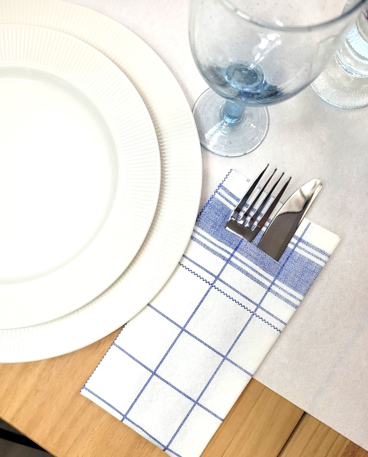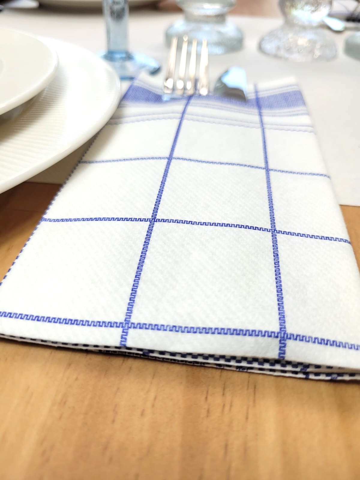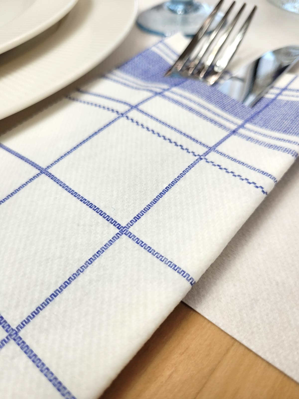 Zsebes evőeszköztartó szalvéta, Linclass – Nadeem (fehér kockás) / 40 × 40 cm / 75 db