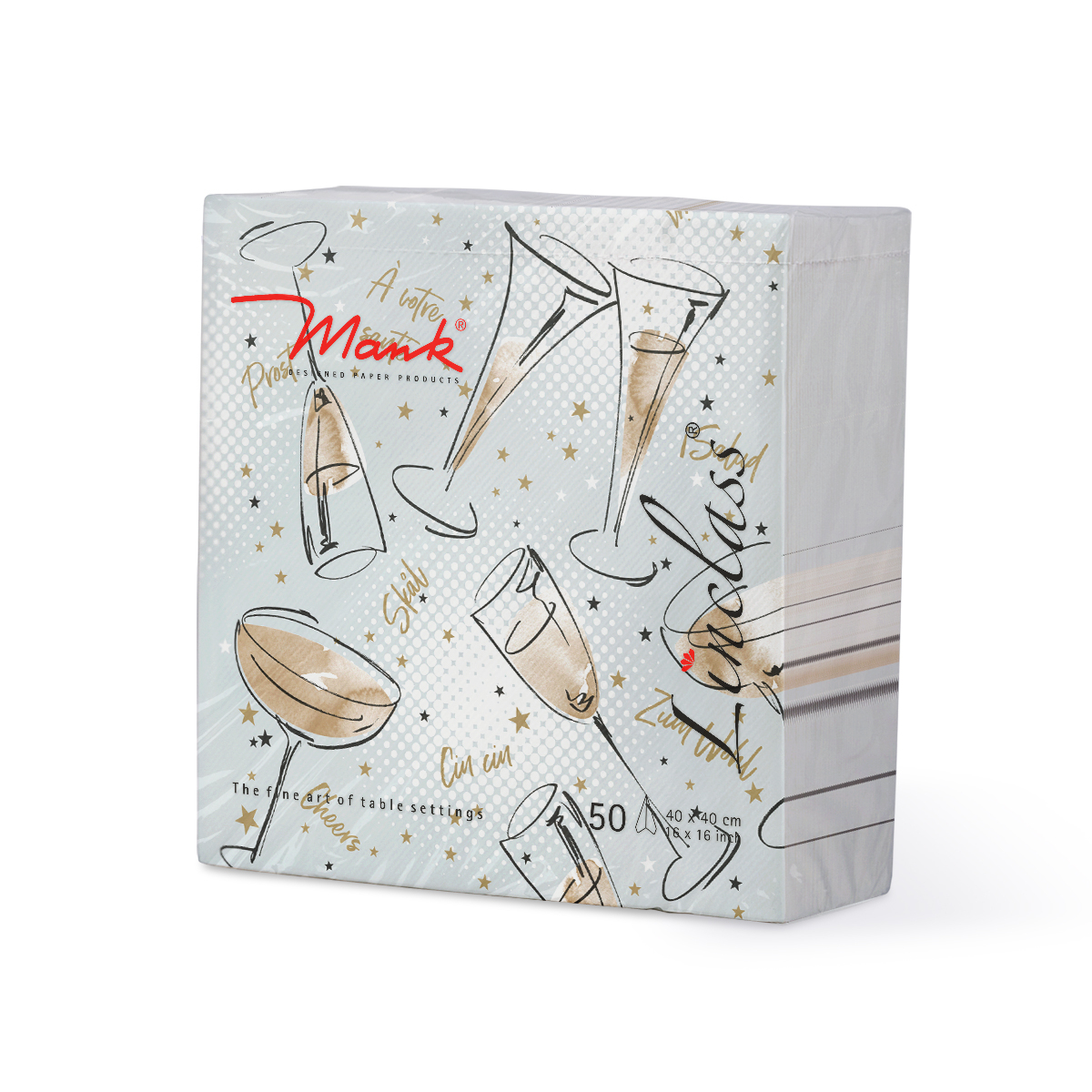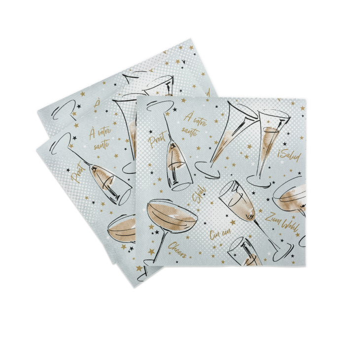 Unnepi Linclass asztali szalvetak Szilveszterre/Ujevre - Cheers / 40 × 40 cm / 50 db