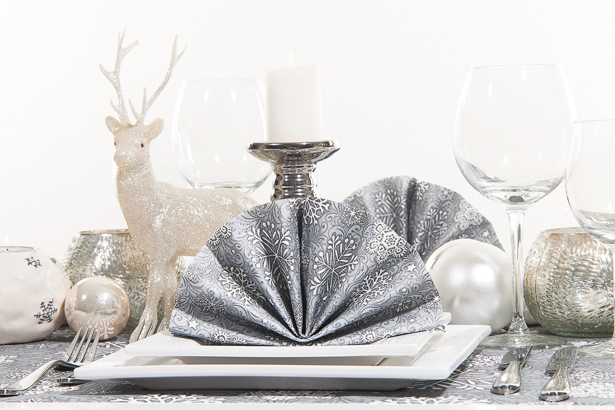 Unnepi Linclass asztali szalvetak Szilveszterre/Ujevre - Steven silbergrau / ezustszurke / 40 × 40 cm / 50 db