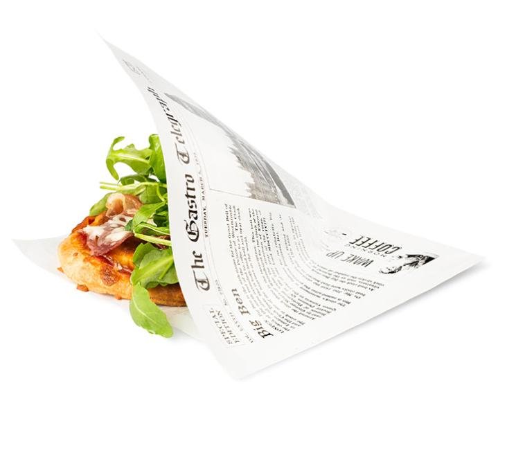 Zsírálló viaszos papír sarokelem, újságmintás / 2 nyitott oldal / 170 × 170 mm / 300 db