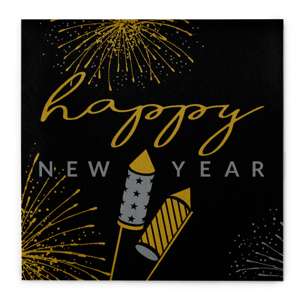 Szalvéták asztali ünnepi Linclass pentru Revelion/Anul Nou - Linclass Rocky (Fekete-Arany-argintiu) / 40 x 40 cm / 50 db
