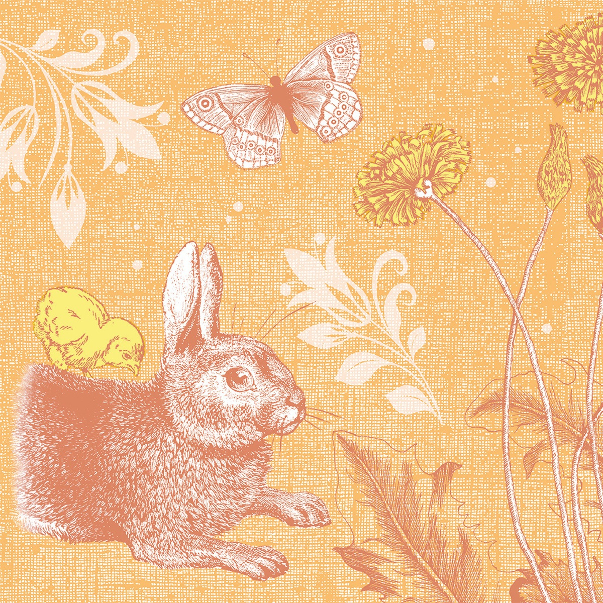Ünnepi szalvéták, Linclass – Peter (nyuszi, narancssárga pasztell, húsvéti minta) / 40 × 40 cm / 50 db