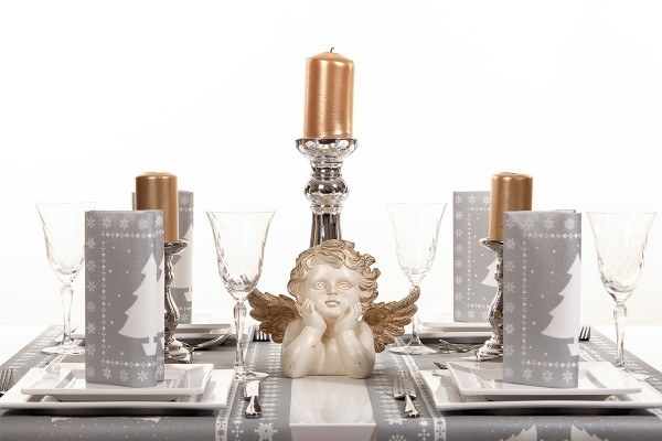 Szalvéták ünnepi argintii special create pentru a decora mesele ünnepi din sezonul sărbătorilor de iarnă.